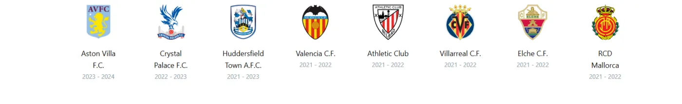 - Những CLB tại Tây Ban Nha (La Liga) gồm: Valencia CF, RCD Mallorca, Elche CF.